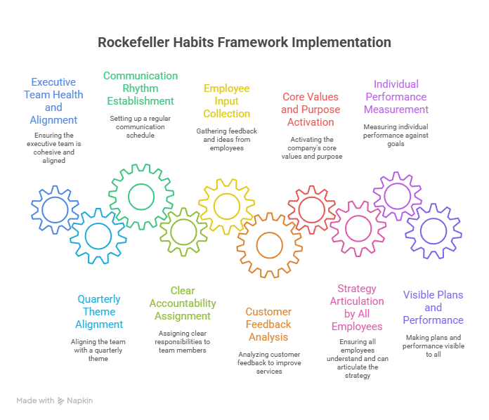 This is where most businesses fall apart, and it's often the biggest challenge for South African companies. You can have the best people and the clearest strategy, but if you can't execute consistently, you won't scale. The Scaling Up methodology introduces what are called the "Rockefeller Habits" – 10 fundamental practices that create what Verne calls "routine sets you free."
